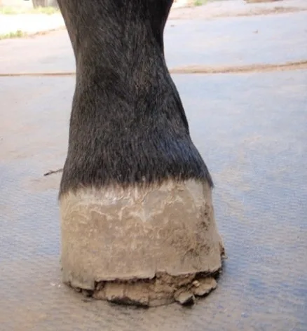 Hoof horn absorbs moisture from the environment, causing it to soften and expand. While some flexibility is beneficial, excessive moisture weakens the bonds between horn tubules. This can lead to flaring, stretching of the white line, and a greater susceptibility to separation and infection.