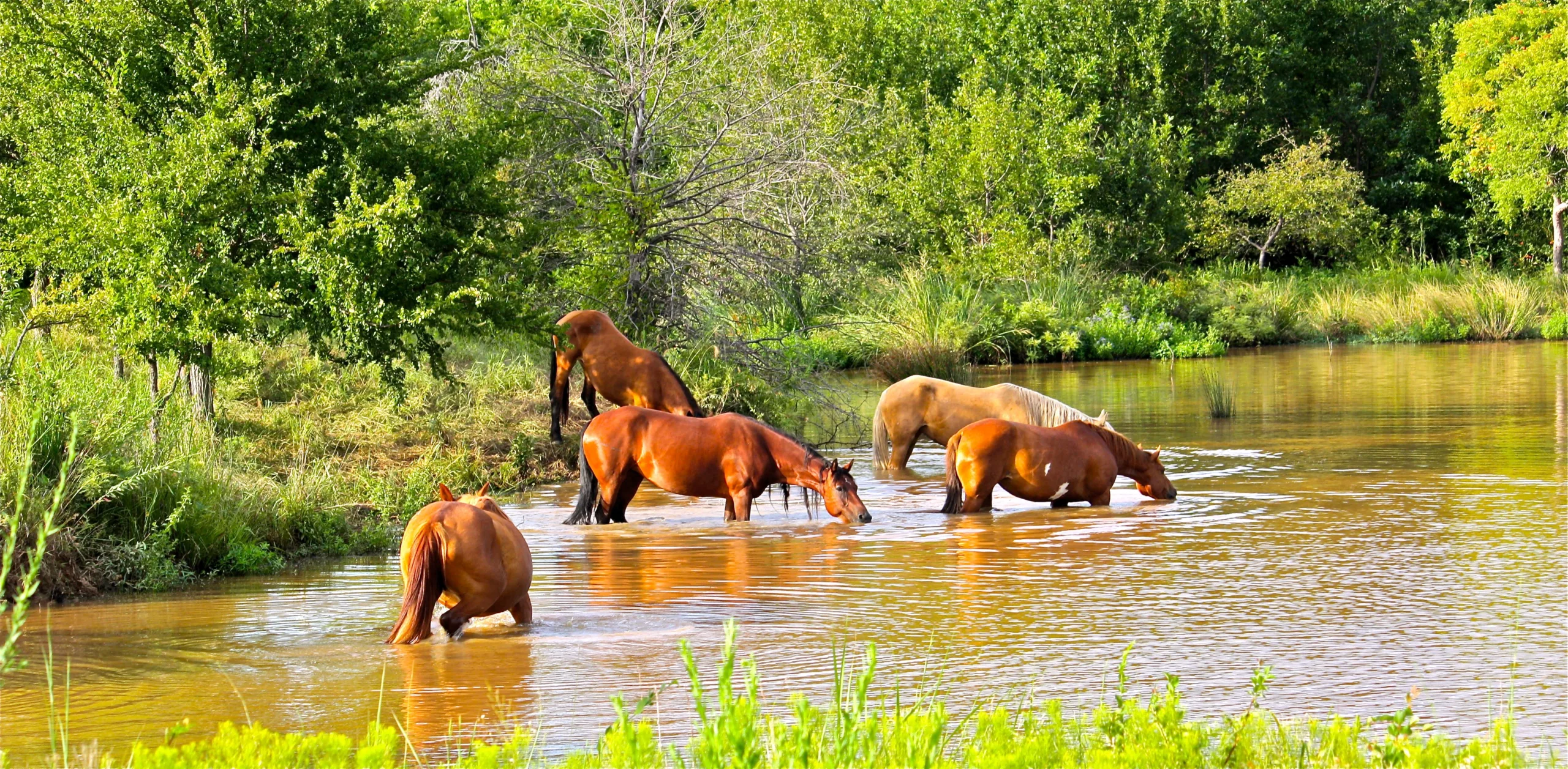 With 4,000 acres spread across wooded hills and open valleys, Mowdy Ranch is home to hundreds of wild mustangs.