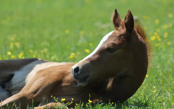 A healthy foal resting after delivery. Photo by Leigh Ann Matthews.